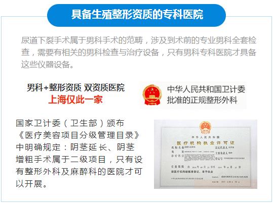 上海九龙男子医院拥有男科疾病+手术资质的专科医院,对尿道下裂、尿道下裂、尿道狭窄等疾病的治疗有丰富的诊疗经验。