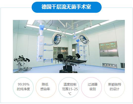 第二重:九龙采用国际标准千层流无菌手术室,严格消毒,做到安全无菌,保障了手术过程中的安全性。空气洁净技术,对微生物污染,采取程度不同的控制,以达到控制空间环境中,空气洁净度适于各类手术之要求,降低手术感染。