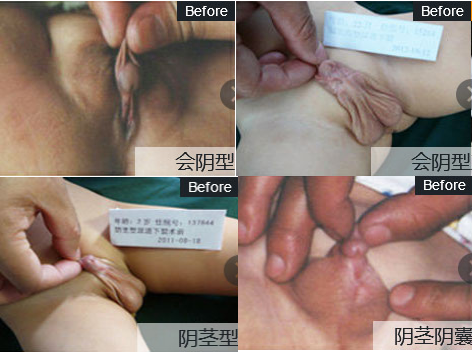 4.会阴型:尿道外口位于会阴部,阴囊分裂,发育不全,阴茎短小而弯曲,常误诊为女性。