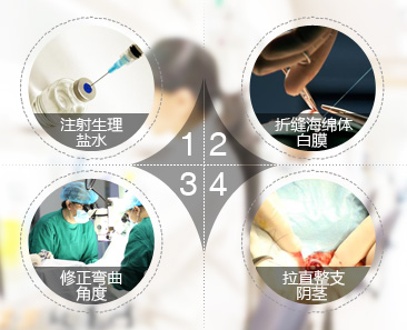 第一步,注射生理盐水:手术通过在阴茎的海绵体内注射生理盐水或助勃药物,造成人工勃起,进而来观察勃起而弯曲的阴茎;第二步,折缝海绵体白膜:利用不吸收的缝线绑紧所造成的拉力将阴茎弯曲的角度逐渐修正。第三步,修正弯曲角度:根据弯曲度采用美国最新技术成果白膜折叠术,将多余的海绵体白膜予以折缝;第四步,连续几次的折缝...【详细】