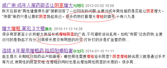 目前依然存在服用药物来实现阴茎增粗的人群,对手术的惧怕促使他们寻找“阴茎增粗捷径”。