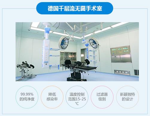 3、手术环境:手术室必须配置国际标准层流手术室,控制空间环境中空气洁净度,提供适宜的温度,湿度,杜绝因手术环境导致的手术感染,提高手术质量。